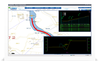 지도에서 측점을 확인하고, 종단도, 횡단도를 바로 조회하여 신속한 현황 파악